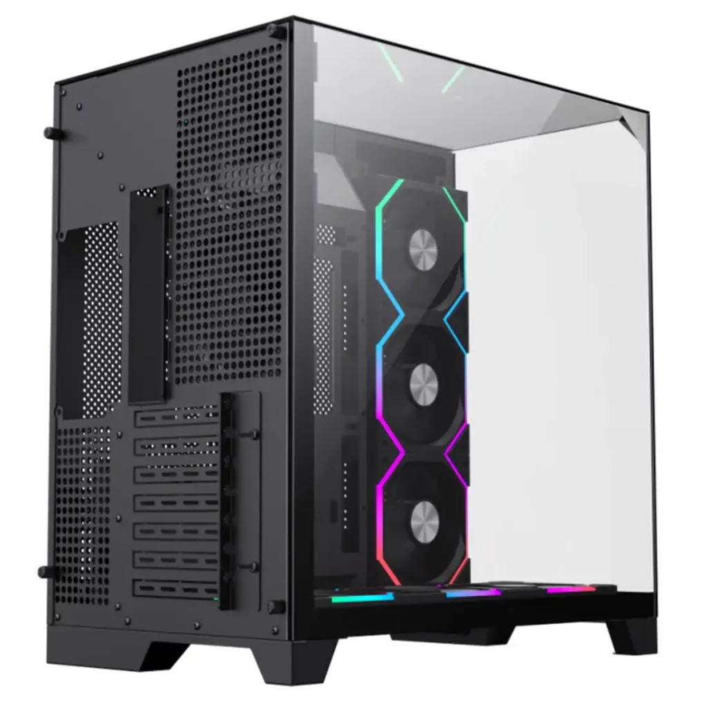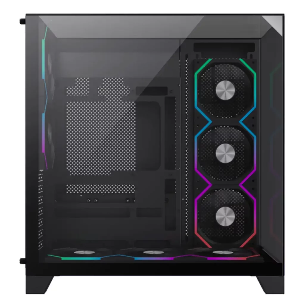 یکی از برجستهترین ویژگیهای کیس Infinity Pro Black ، طراحی تمامنما (Full-View Design) آن است. این کیس با سه پنل از جنس شیشه حرارتدیده (Tempered Glass) در قسمتهای مختلف، دیدی کامل و بینظیر از تمام قطعات داخلی سیستم شما را فراهم میکند. از کارت گرافیک قدرتمند گرفته تا خنککننده پردازنده با نورپردازی خیرهکننده و حتی آرایش زیبای کابلها، همه چیز در معرض دید قرار میگیرد. این شفافیت کامل نه تنها به شما اجازه میدهد تا از زیبایی سیستم خود لذت ببرید، بلکه به نمایش خیرهکننده نورپردازی RGB قطعات داخلی کمک میکند و یک فضای گیمینگ چشمنواز و حرفهای را برای شما به ارمغان میآورد.
