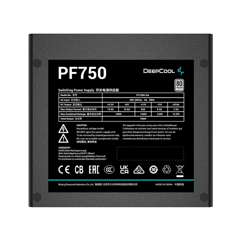 منبع تغذیه کامپیوتر دیپ کول مدل PF750 80 Plus White توان 750 وات
