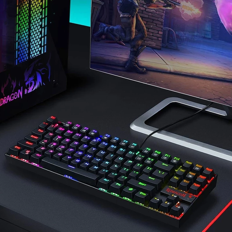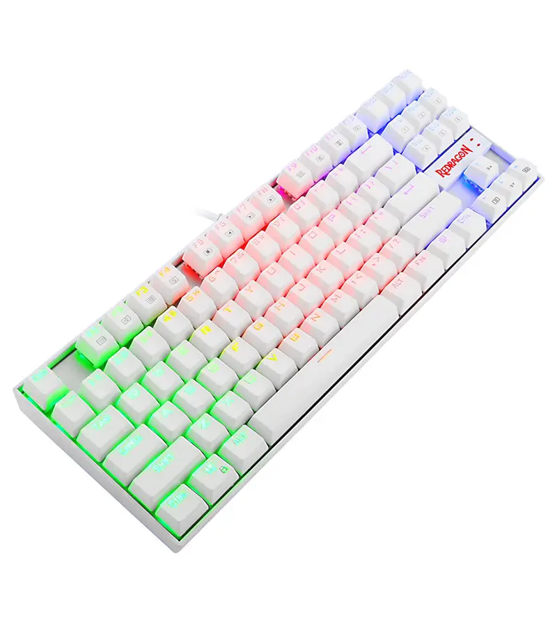 اولین نکتهای که در این کیبورد باید به آن اشاره داشت حذف جای دست یا همان Num Pad است. این طراحی به منظور جمعوجور شدن بیشتر کیبورد انجام شده است. این کیبورد در دسته کیبوردهای مکانیکی قرار میگیرد. استفاده از کلیدهای این کیبورد به شما حس بسیار خوبی را القا میکند. برای کیبورد مخصوص بازی ردراگون مدل K552 RGB 87 کلید و 12 کلید میانبر تعبیه شده است. گیمرها زمان زیادی برای خارج شدن از اتاق بازی ندارند و همین باعث شده تا معمولا روی میز هر گیمری بطری آب یا نوشیدنی دیده شود. ردراگون برای کاهش احتمال آسیب، این کیبورد را در برابر پاشیده شدن مایعات مقاوم کرده است. این ویژگی بدین معنا نیست که این کیبورد ضد آب بوده اما اگر قطرات آب روی کیبوردتان ریخت جای نگرانی ندارید. یکی دیگر از ویژگیهای این مدل مقاوم بودن آن در برابر رطوبت است. شما این کیبورد را برای ویندوز و مک میتوانید استفاده کنید تنها باید به نسخه سیستمعاملتان به خصوص در صورتی که از مک استفاده میکنید توجه داشته باشید.