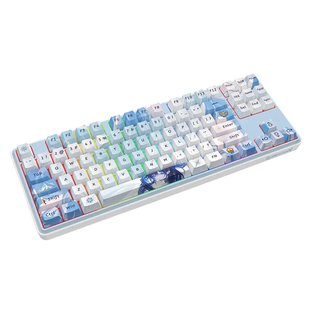 Redragon K707 AK PRO با طراحی انیمه زیبا و کلیدهای Dye-Sub PBT، ظاهری منحصر به فرد و جذاب به کیبورد شما میبخشد. این کلیدها با طرحهای انیمه و شخصیت Eisa، حس و حال متفاوتی را به شما منتقل میکنند و برای استفاده طولانی مدت طراحی شدهاند.