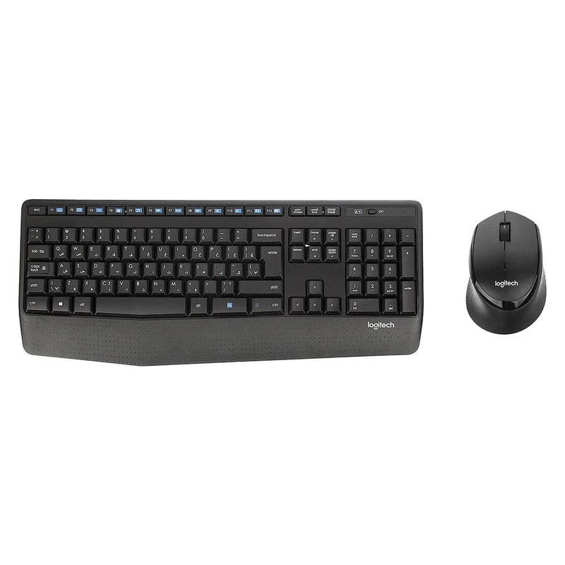 محصول «MK345» شرکت لاجیتک (Logitech) یک کیبورد همراه ماوس است که برای مصارف خانگی و اداری ایدئال است. ماوس و کیبورد این مجموعه از طریق بلوتوث و دانگل USB به کامپیوتر متصل میشود و تا 10 متر مسافت بهخوبی پشتیبانی میکند. انرژی موردنیاز این مجموعه از طریق باتری آلکالاین تأمین میشود و تا مدتها نیاز به تعویض مجدد نخواهند داشت. کیبورد MK345 دارای 103 کلید است و تا 10 میلیون ضربه کارایی مناسب دارد. ماوس این مجموعه هم از طراحی ارگونومیکی خوبی برخوردار است بهگونهای که پس از چند ساعت کار با آن احساس خستگی در مچ دست احساس نخواهید کرد. سنسور این ماوس از نوع اپتیکال است دقتی برابر با 1000dpi دارد. وزن این ماوس 86 گرم است و برای یک ماوس خانگی بسیار مناسب است. شرکت لاجیتک یکی از بزرگترین تولیدکنندگان تجهیزات جانبی کامپیوتر است که محصولات باکیفیت و بادوامی روانهی بازار میسازد. اگر به دنبال یک مجموعهی باکیفیت و خوشساخت هستید، MK345 بهخوبی قادر است نیازهای شمارا پاسخگو باشد. همچنین کیبورد این مجموعه دارای حروف فارسی است که برای تایپ فارسی مناسب است..