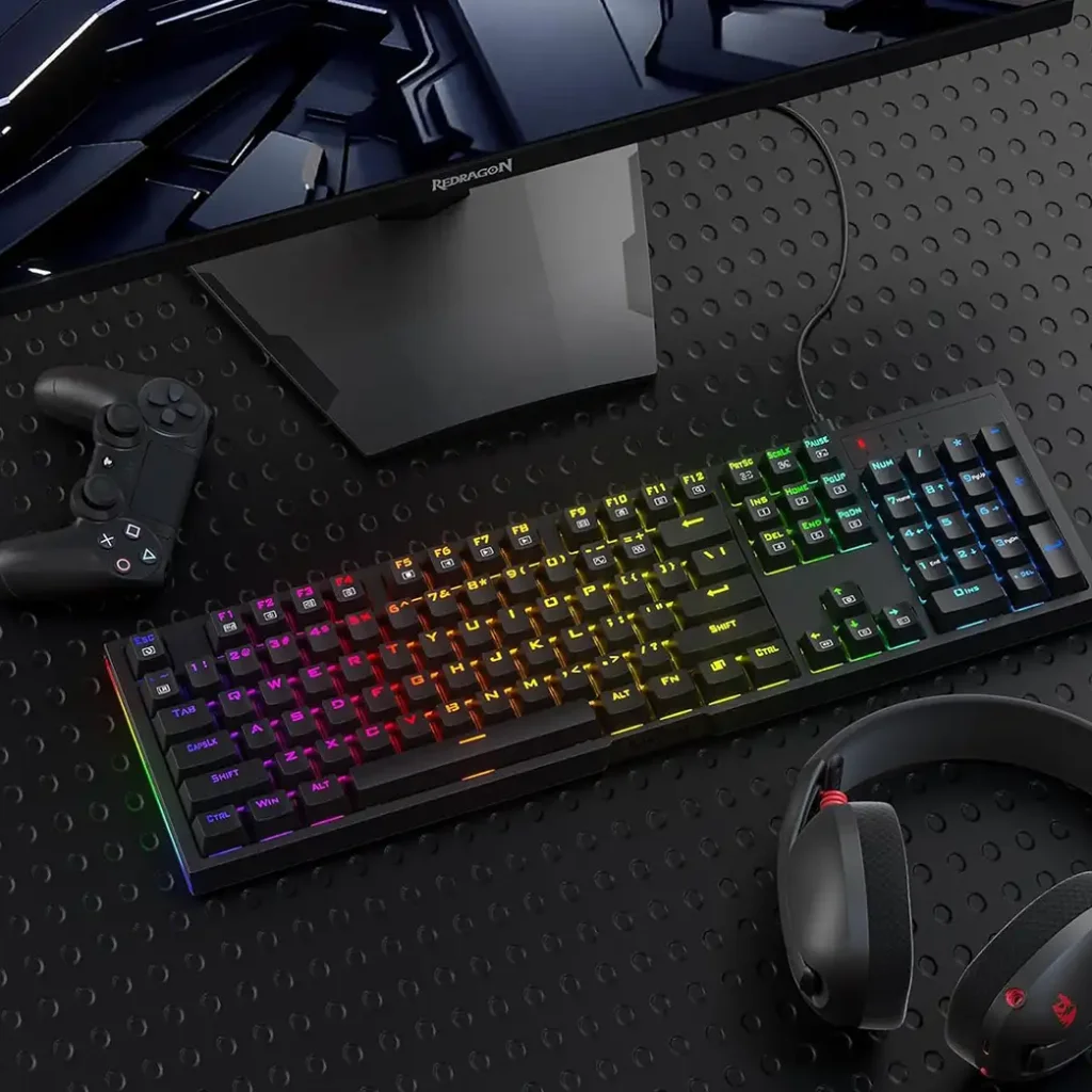 در یک کیبورد فول سایز گیمینگ، دسترسی آسان به کنترلهای چندرسانهای از اهمیت بالایی برخوردار است. ردراگون K670 مجهز به کلیدهای مدیا اختصاصی است. این کلیدها به شما اجازه میدهند تا بدون خارج شدن از محیط بازی، کنترل کاملی بر روی پخش صوتی و تصویری داشته باشید. تنظیم میزان صدا، قطع/وصل کردن صدا (Mute/Unmute)، و کنترل پخش/مکث (Play/Pause) از جمله اقداماتی است که میتوانید به راحتی و در کسری از ثانیه انجام دهید. این ویژگی در طول جلسات طولانی بازی، استریم یا گوش دادن به موسیقی بسیار کاربردی است و تمرکز شما را در حین بازی حفظ میکند.